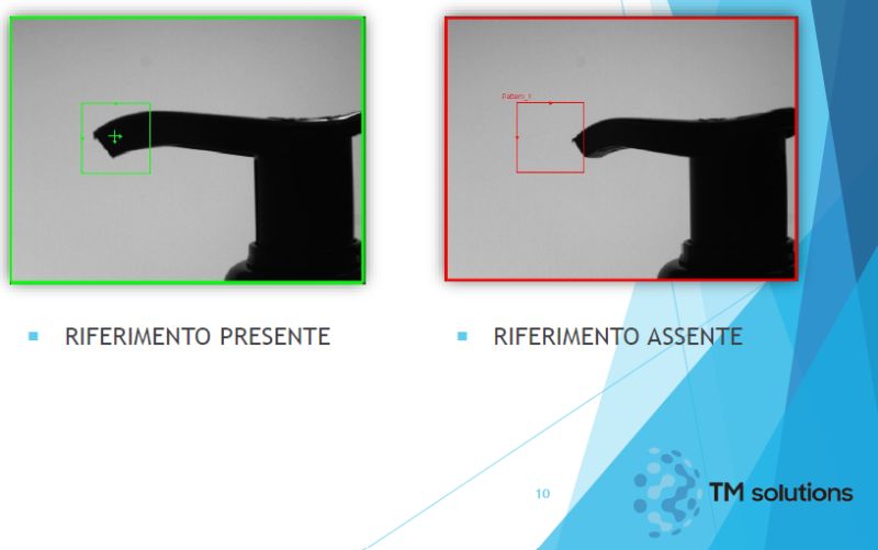Grazie al performante tool di pattern matching utilizzato e grazie alla tecnica d’illuminazione backlight, è stato possibile enfatizzare una caratteristica di forma univoca utile al riconoscimento ripetibile della posizione del flacone durante la sua rotazione.