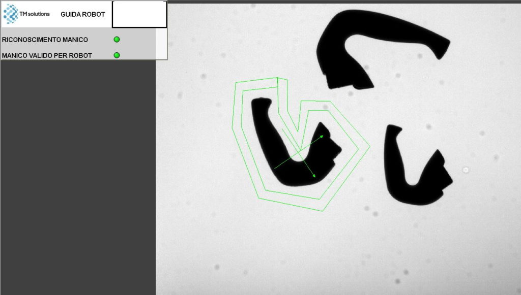 Il sistema di visione, oltre a riconoscere i manici e le relative informazioni di posizione, è anche in grado di segnalare e identificare i manici liberi da ingombri per poter essere manipolati, grazie all’utilizzo di opportune aree di controllo posizionate sul profilo del manico.